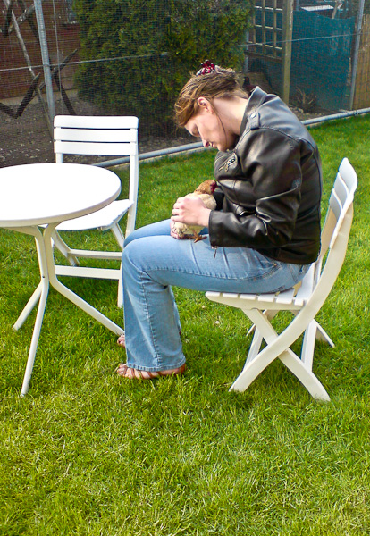 Ich liebte es, mit ihnen zu zusammenzuleben und ihnen zuzusehen, wie sie sich bewegen und miteinander umgehen. Die Seidenhühner hatte ich sehr lieb und sie waren auch sehr zutraulich. Ich liebte es, sie in meinen Armen zu wiegen.